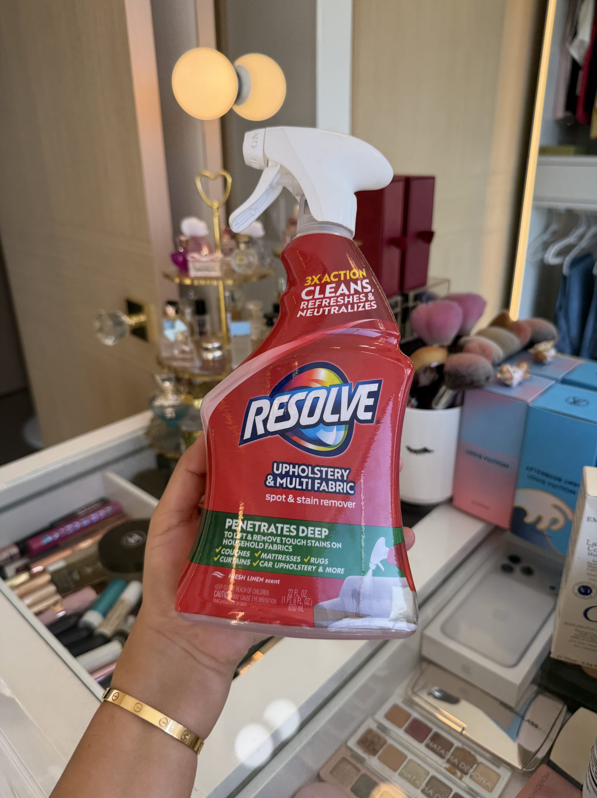 Resolve El limpiador de tapicería y removedor de manchas está especialmente formulado para eliminar de forma segura la suciedad y el olor de telas domésticas como sofás, colchones, cortinas y más, sin decoloración cuando se utiliza según las indicaciones. Es seguro de usar en la mayoría de telas domésticas como poliéster, nailon y mezclas de algodón. Para obtener los resultados más efectivos, trate las manchas de inmediato. Limpia y refresca. El limpiador de tapicería Resolve está especialmente formulado para eliminar de forma segura la suciedad y el olor de telas domésticas como sofás, colchones, cortinas, etc. sin decoloración cuando se utiliza como se indica. No contiene fósforo